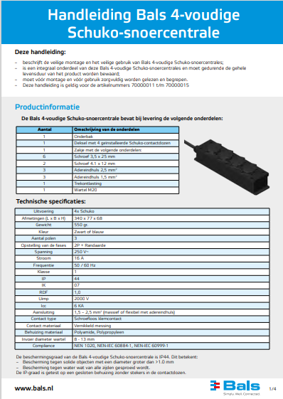 Handleiding Bals 4-voudige Schuko-snoercentrale