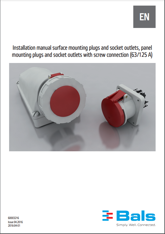Install. man. surface and panel mounting plugs and socket, screw (63A & 125A)