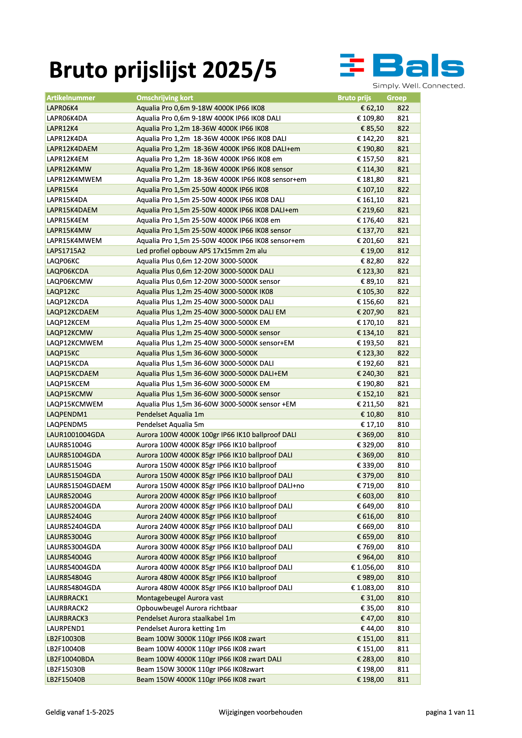 Bruto prijslijst Bals Ledlines 2025/5 pdf